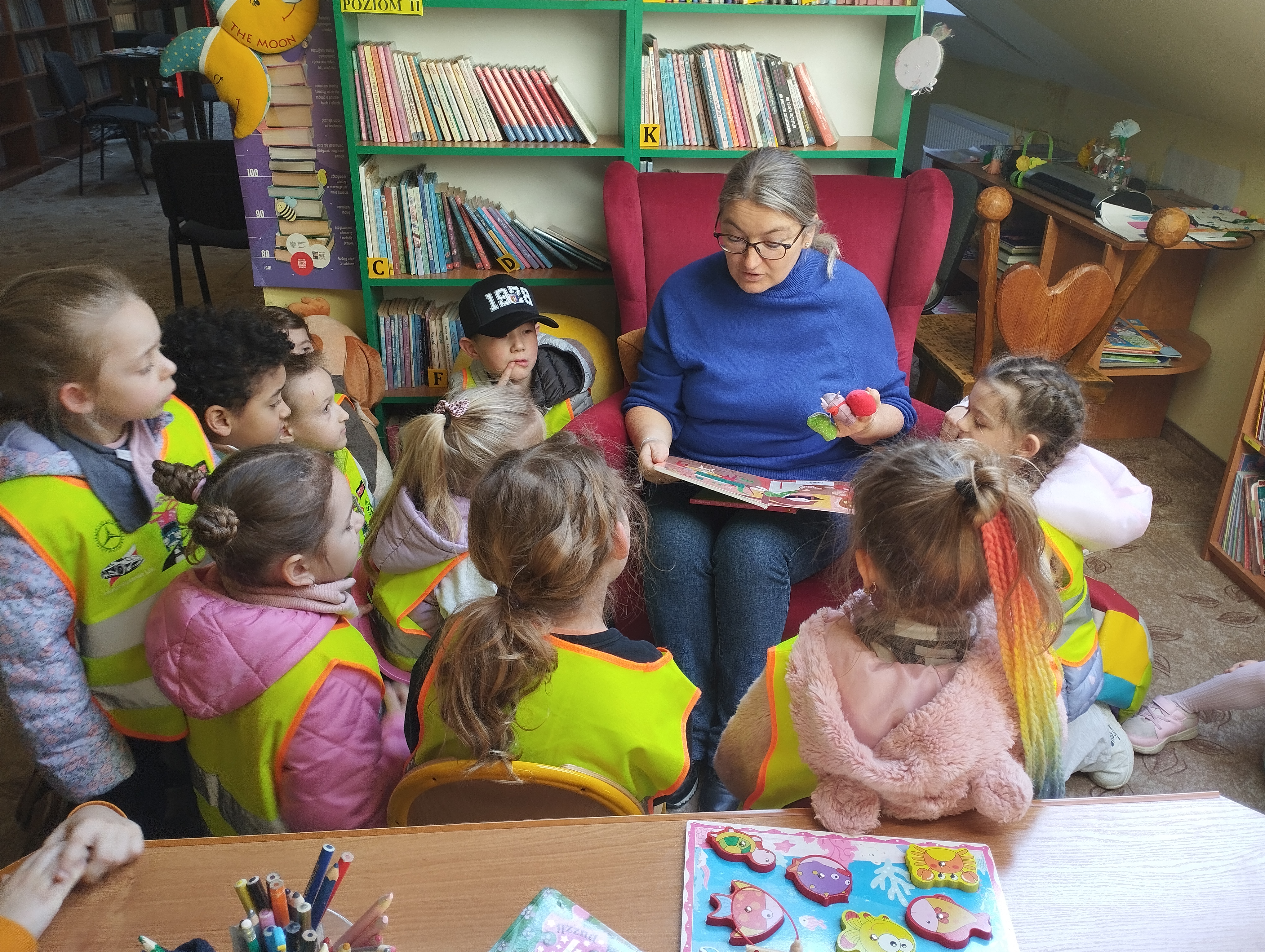 W piątek nasze przedszkolaki miały okazję odwiedzić pobliską bibliotekę. Było to wyjątkowe spotkanie z książką, które dostarczyło dzieciom wielu pozytywnych wrażeń i nowych doświadczeń.