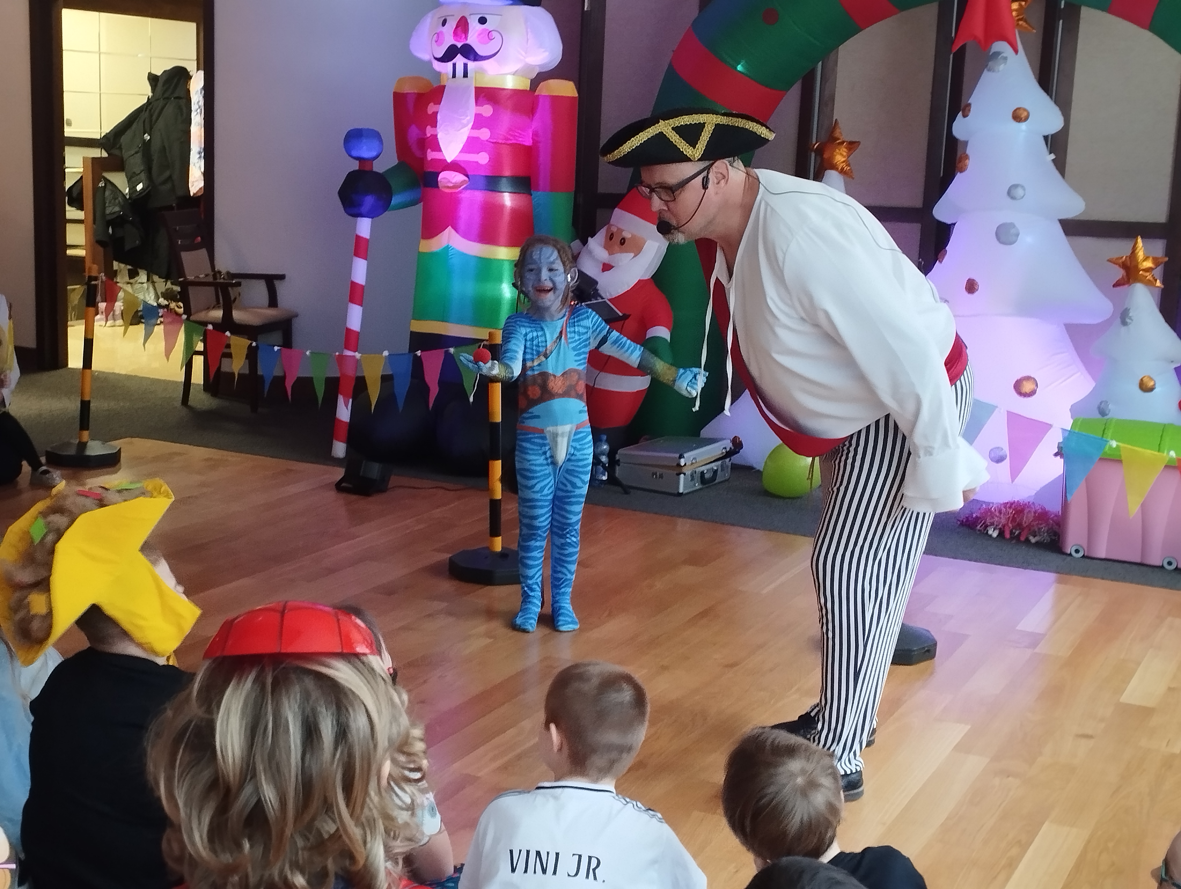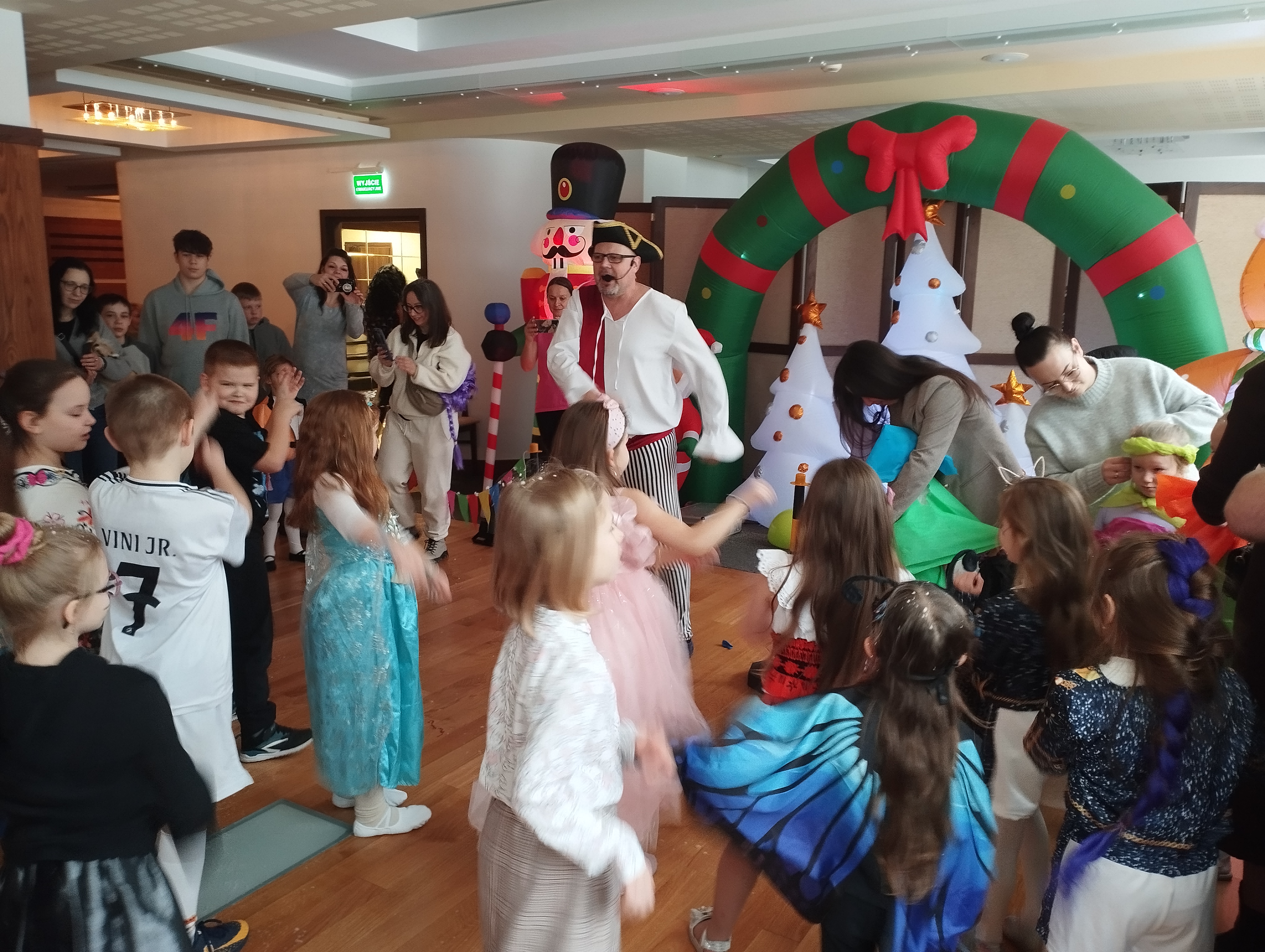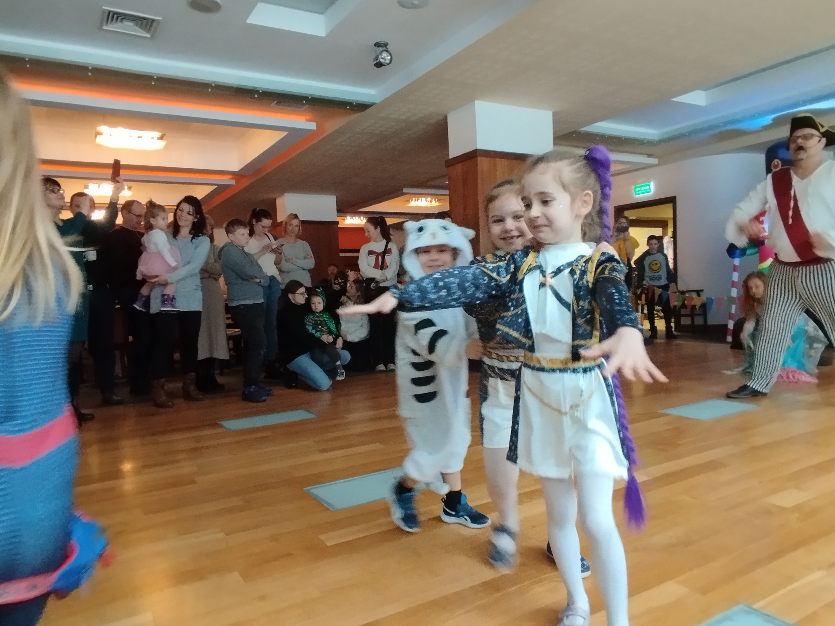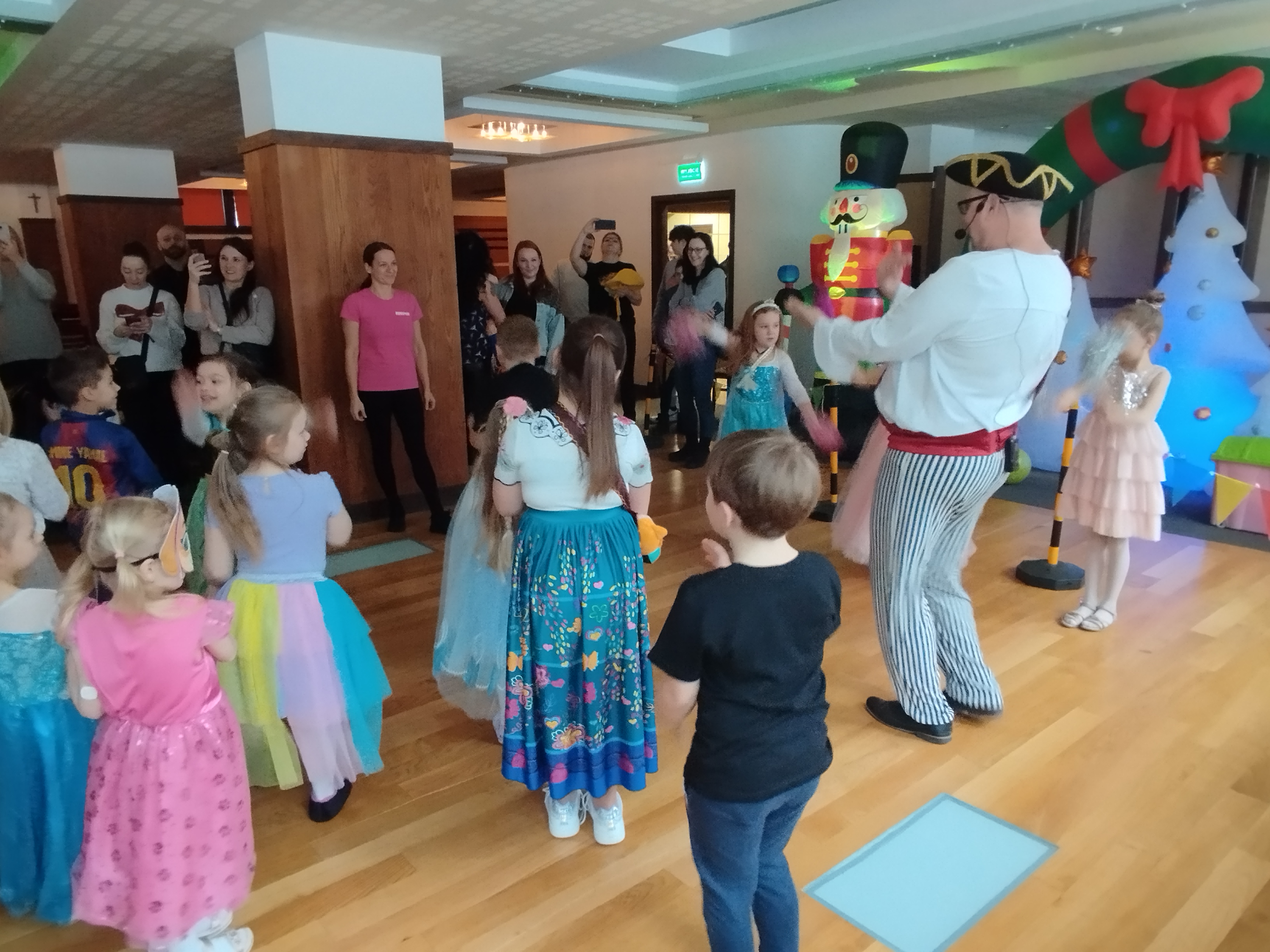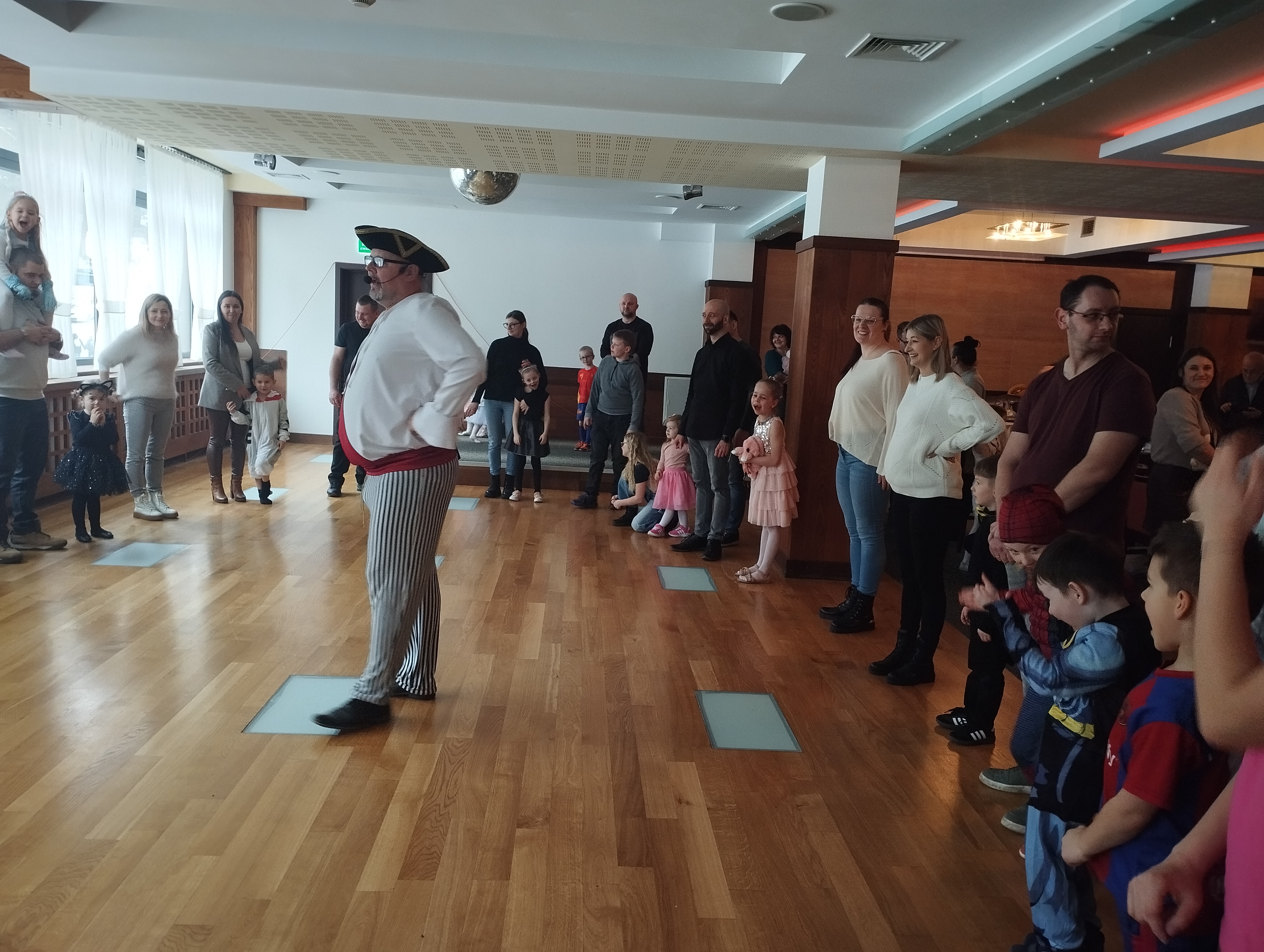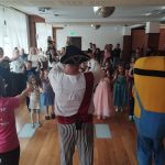 Zabawę prowadził wesoły pirat, który przygotował dla dzieci mnóstwo atrakcji. Były tańce, konkursy, animacje i pirackie niespodzianki, które wywoływały uśmiech na twarzach wszystkich uczestników. Dzieci z dumą prezentowały swoje przebrania i chętnie brały udział w każdej zabawie.