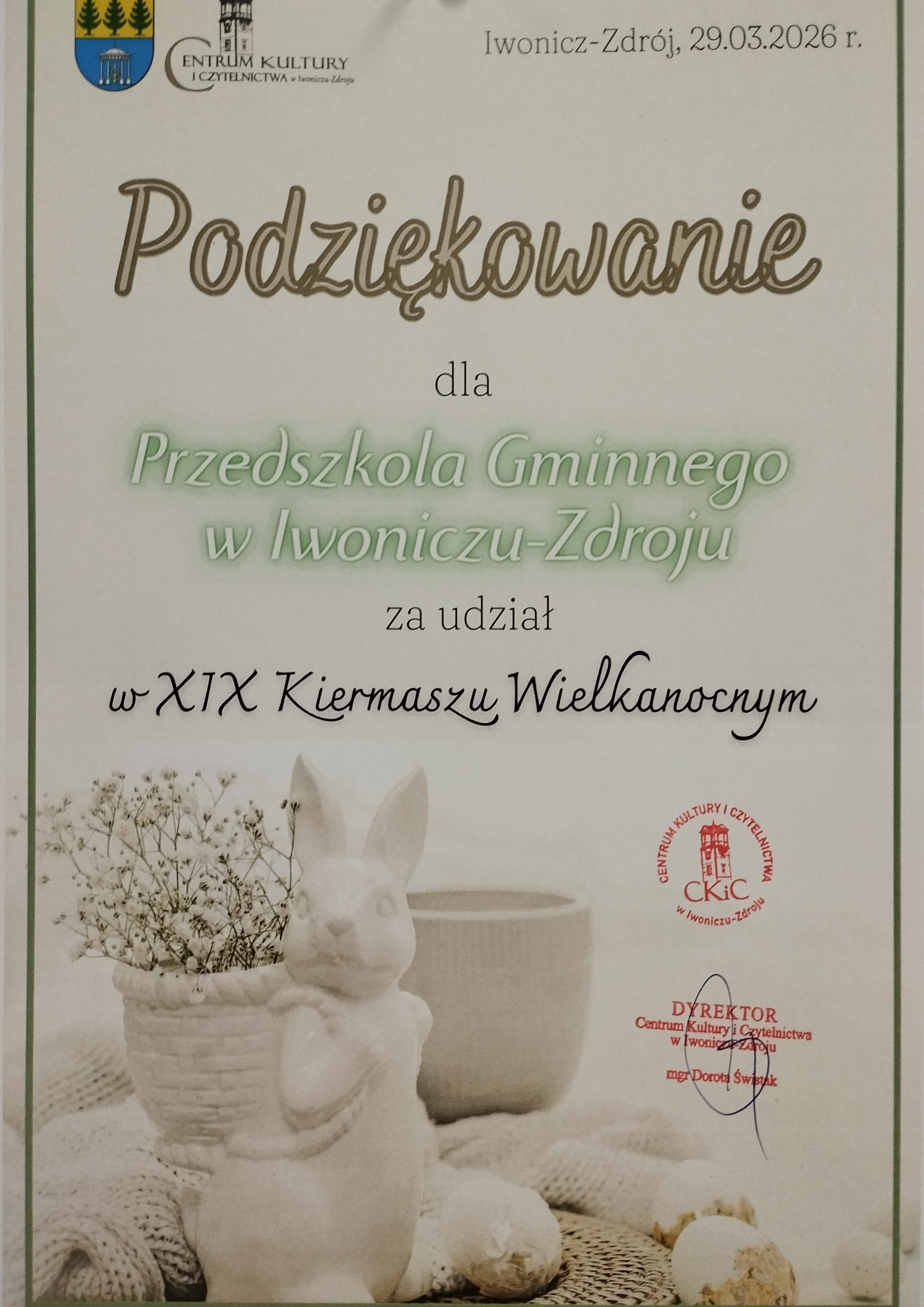 W minioną niedziele nasze przedszkole wzięło udział w XIX Kiermaszu Wielkanocnym. Było to wyjątkowe wydarzenie pełne świątecznej atmosfery, kolorowych dekoracji i wspólnego świętowania.