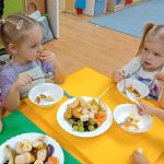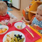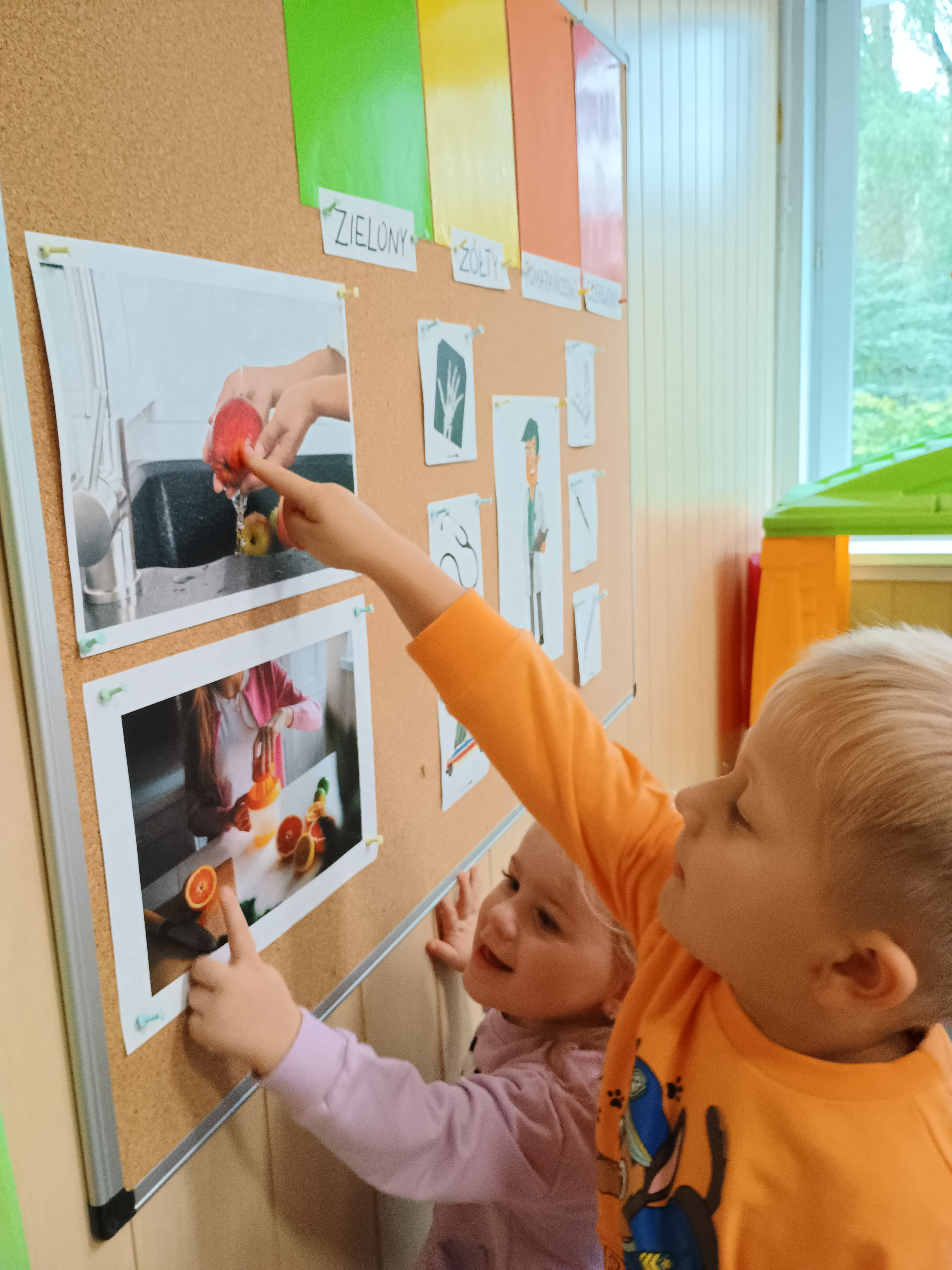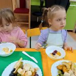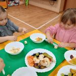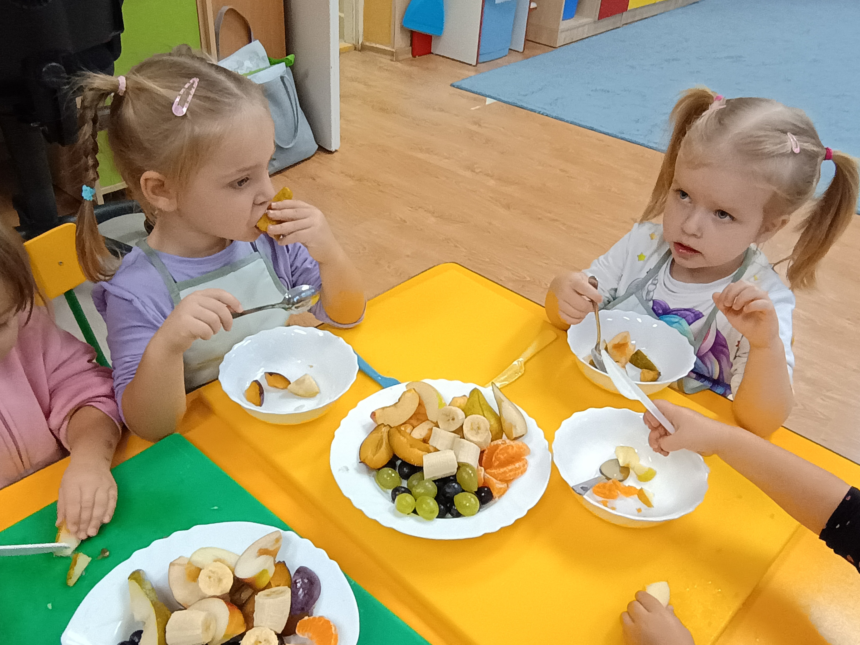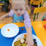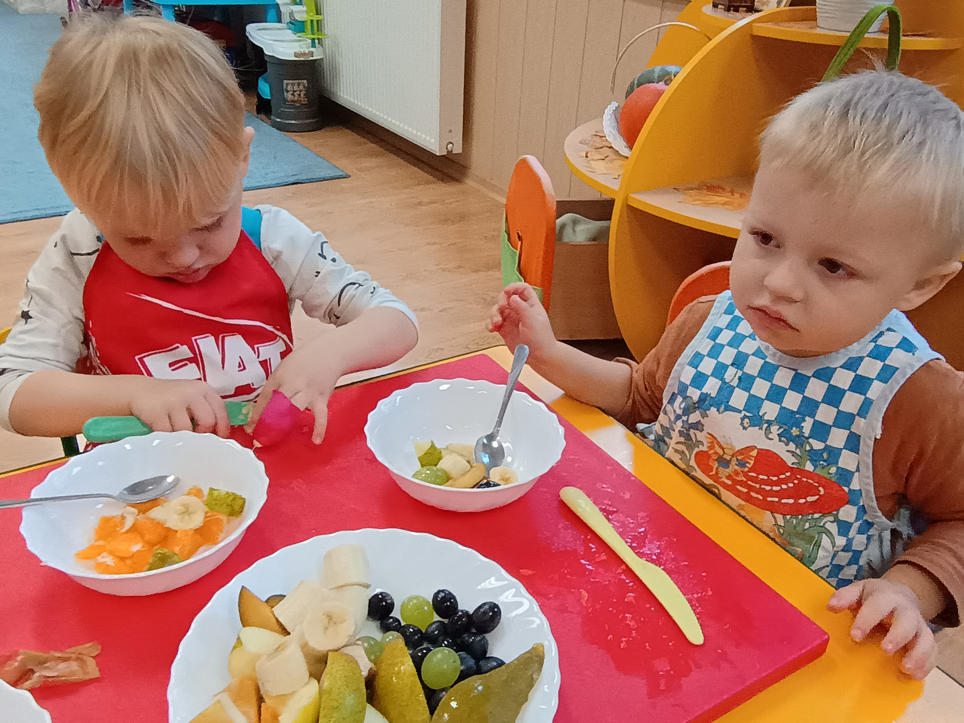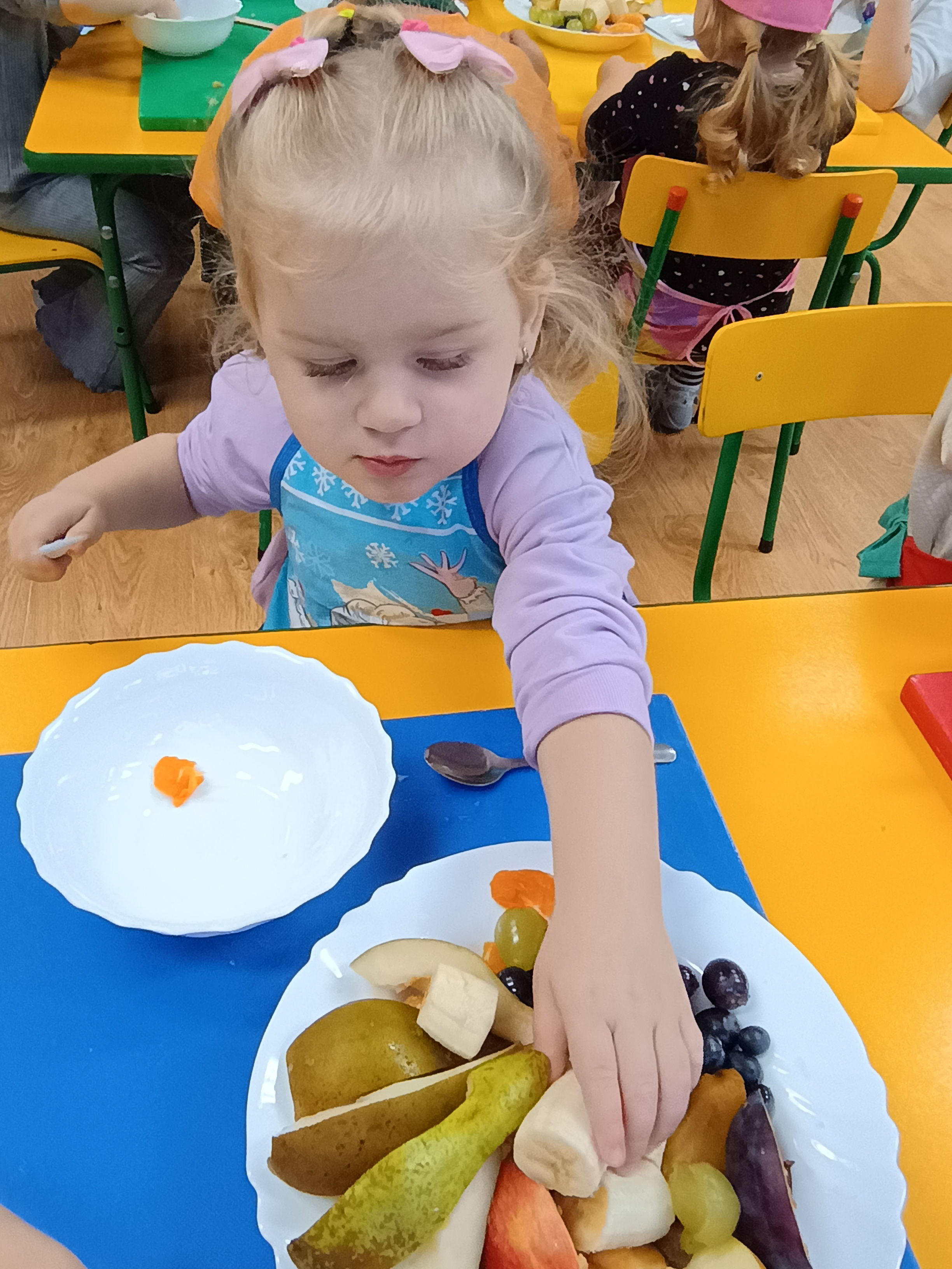 i poznawały ich zapachy oraz smaki. W salach unosił się wspaniały, owocowy aromat, a własnoręcznie przygotowana sałatka smakowała wszystkim wyjątkowo! To był pyszny i zdrowy dzień pełen radości i kolorów! 🍊🍇🍏