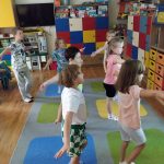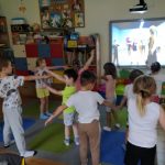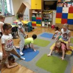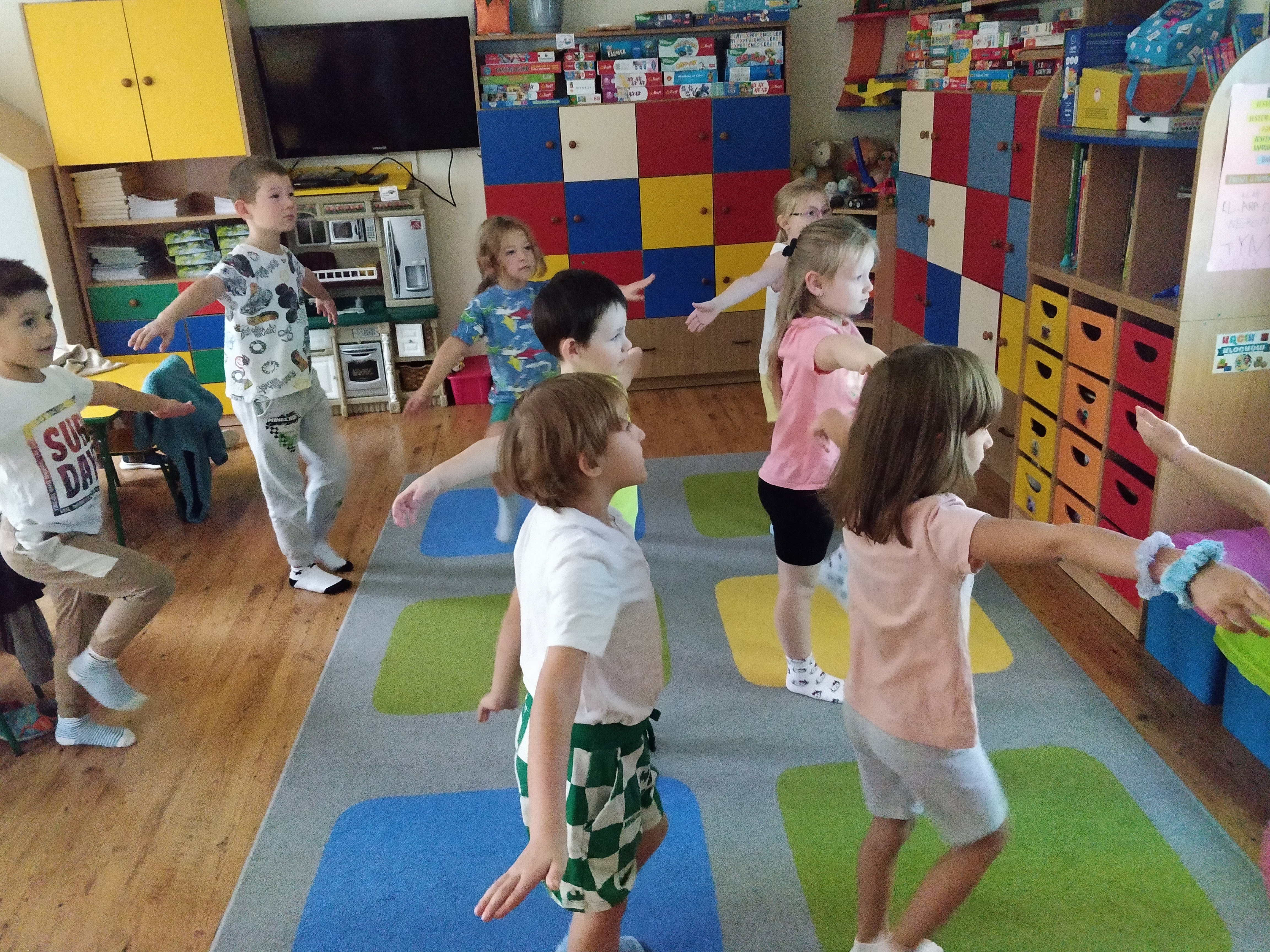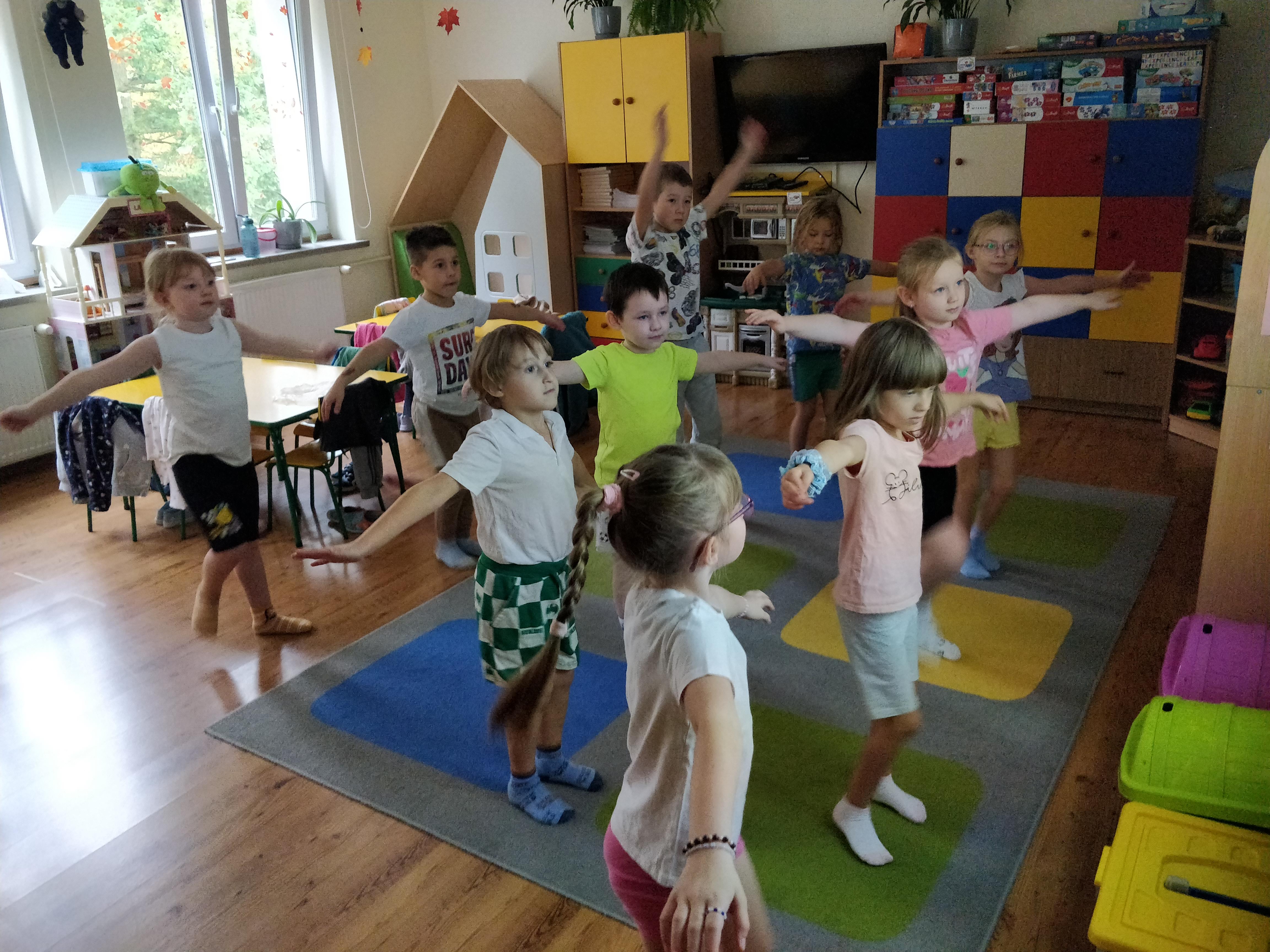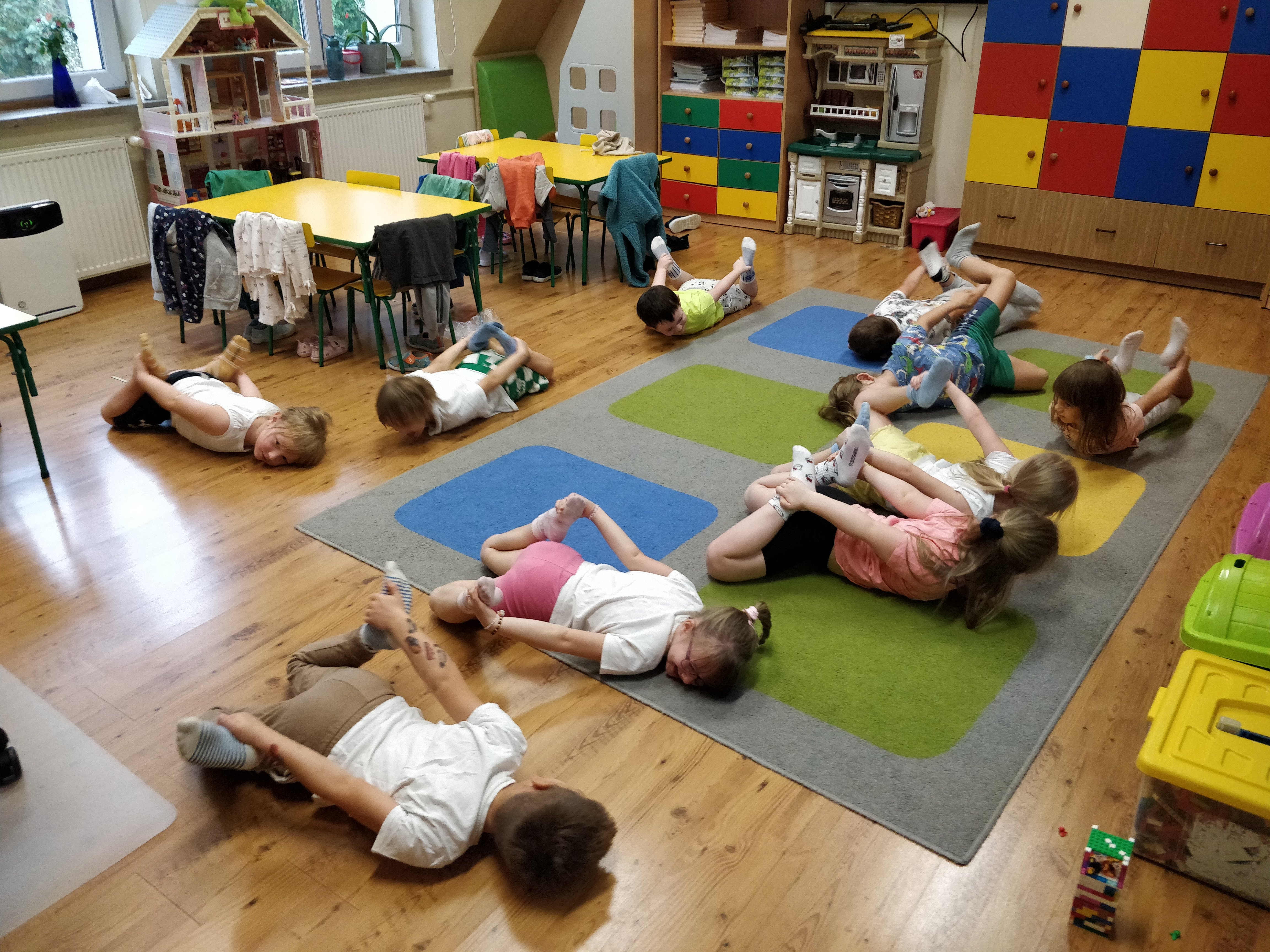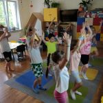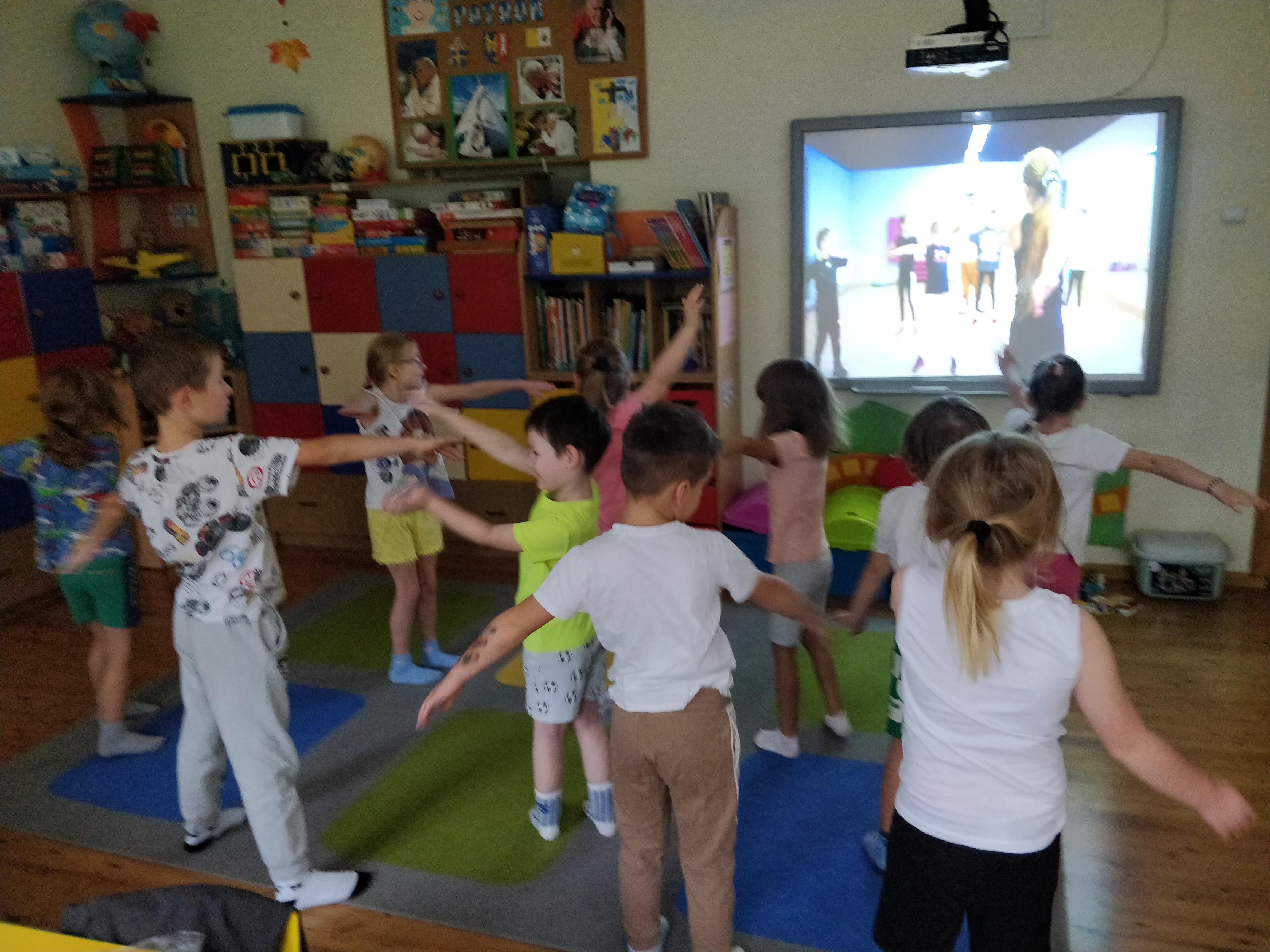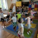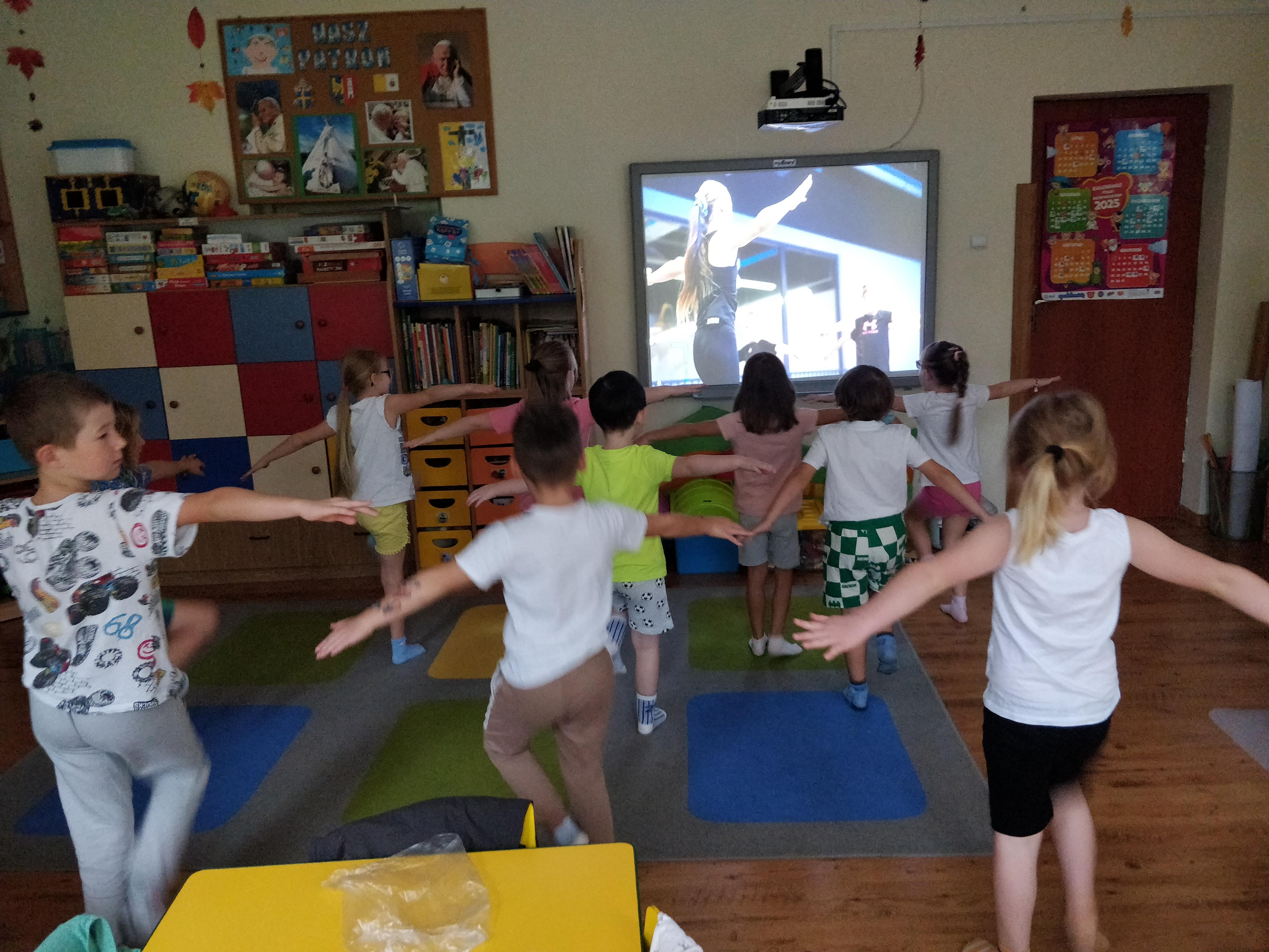 W ramach akcji „Przedszkolak ma moc” 6 latki uczestniczyły w zajęciach aerobiku. Zajęcia prowadzone były online przez instruktorkę zabaw ruchowych. Celem tej akcji jest poprawa kondycji fizycznej przedszkolaków oraz zainteresowanie dzieci sportem. Taniec przy muzyce to ulubiona forma zabaw naszych przedszkolaków.