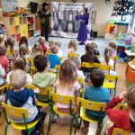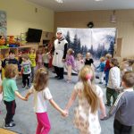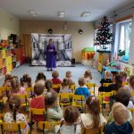 W naszym przedszkolu odbyło się radosne przedstawienie teatralne pt. „Świąteczna gorączka Olafa”. Dzieci z wielkim zaangażowaniem śledziły losy sympatycznego bałwanka, który wprowadził wszystkich w świąteczny nastrój. Było dużo uśmiechu, muzyki i wspólnej zabawy, a magia świąt zagościła w naszych sercach.