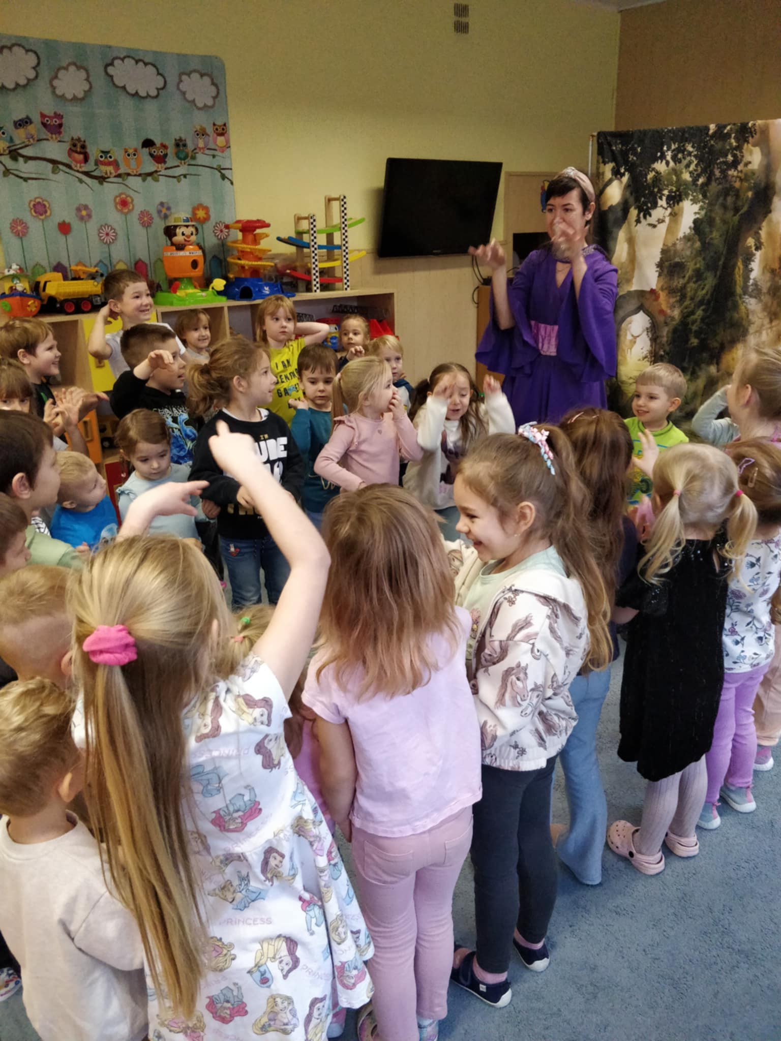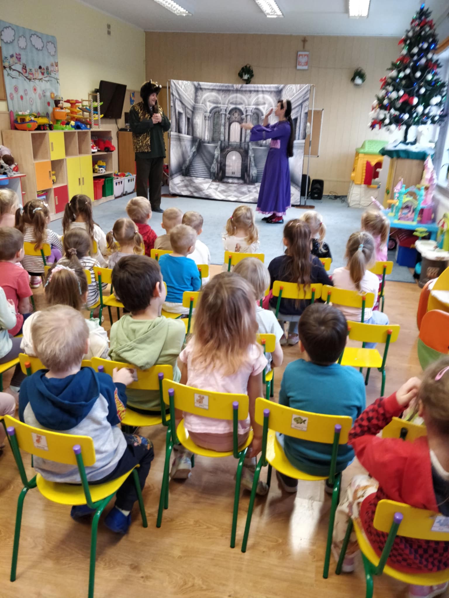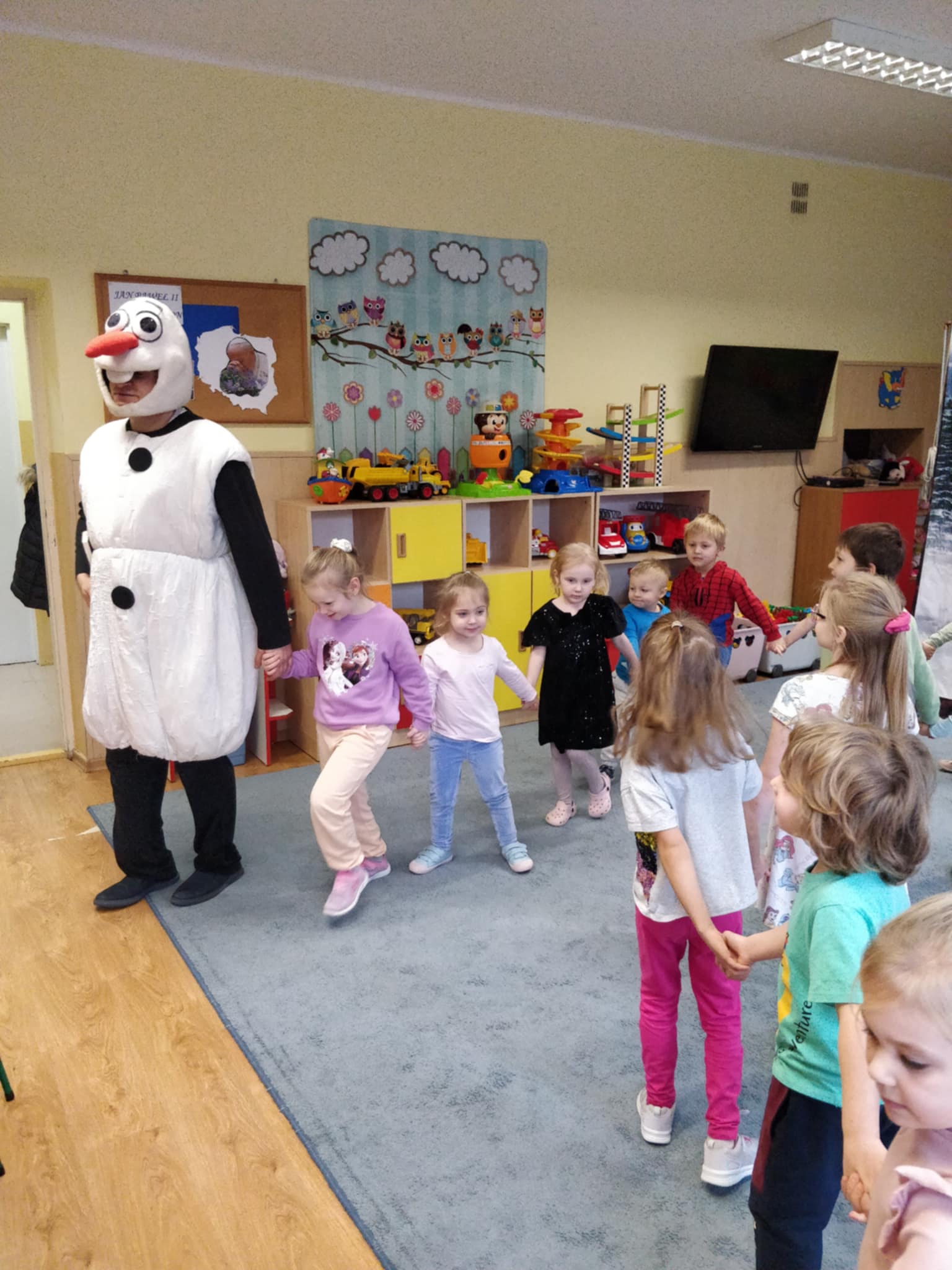 W naszym przedszkolu odbyło się radosne przedstawienie teatralne pt. „Świąteczna gorączka Olafa”. Dzieci z wielkim zaangażowaniem śledziły losy sympatycznego bałwanka, który wprowadził wszystkich w świąteczny nastrój. Było dużo uśmiechu, muzyki i wspólnej zabawy, a magia świąt zagościła w naszych sercach.