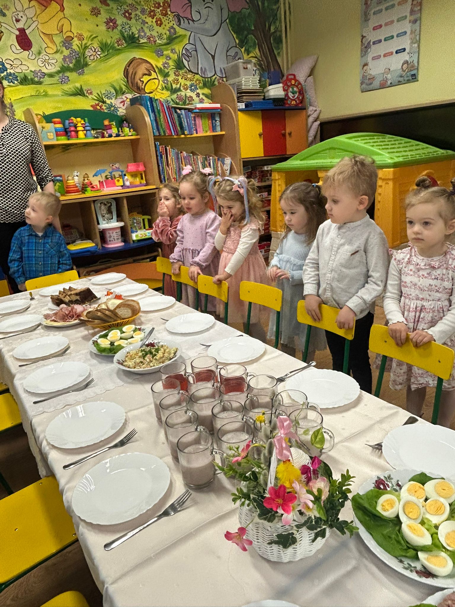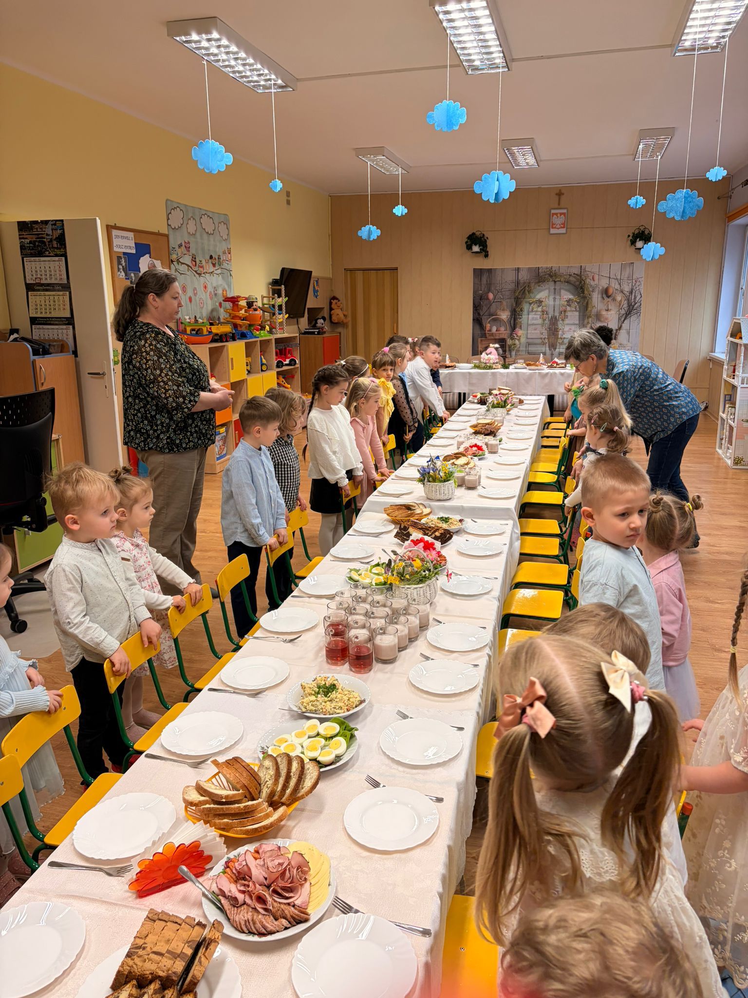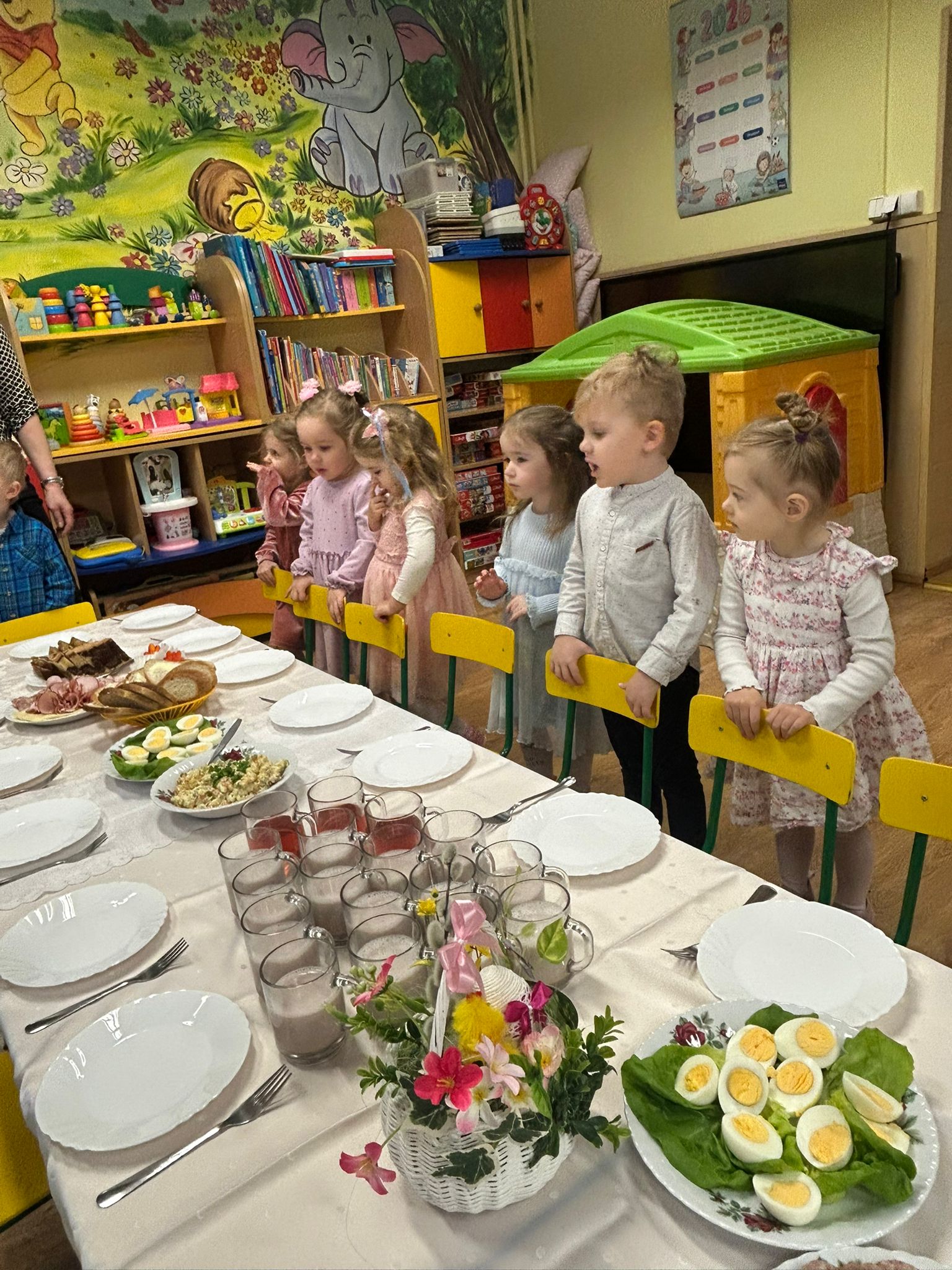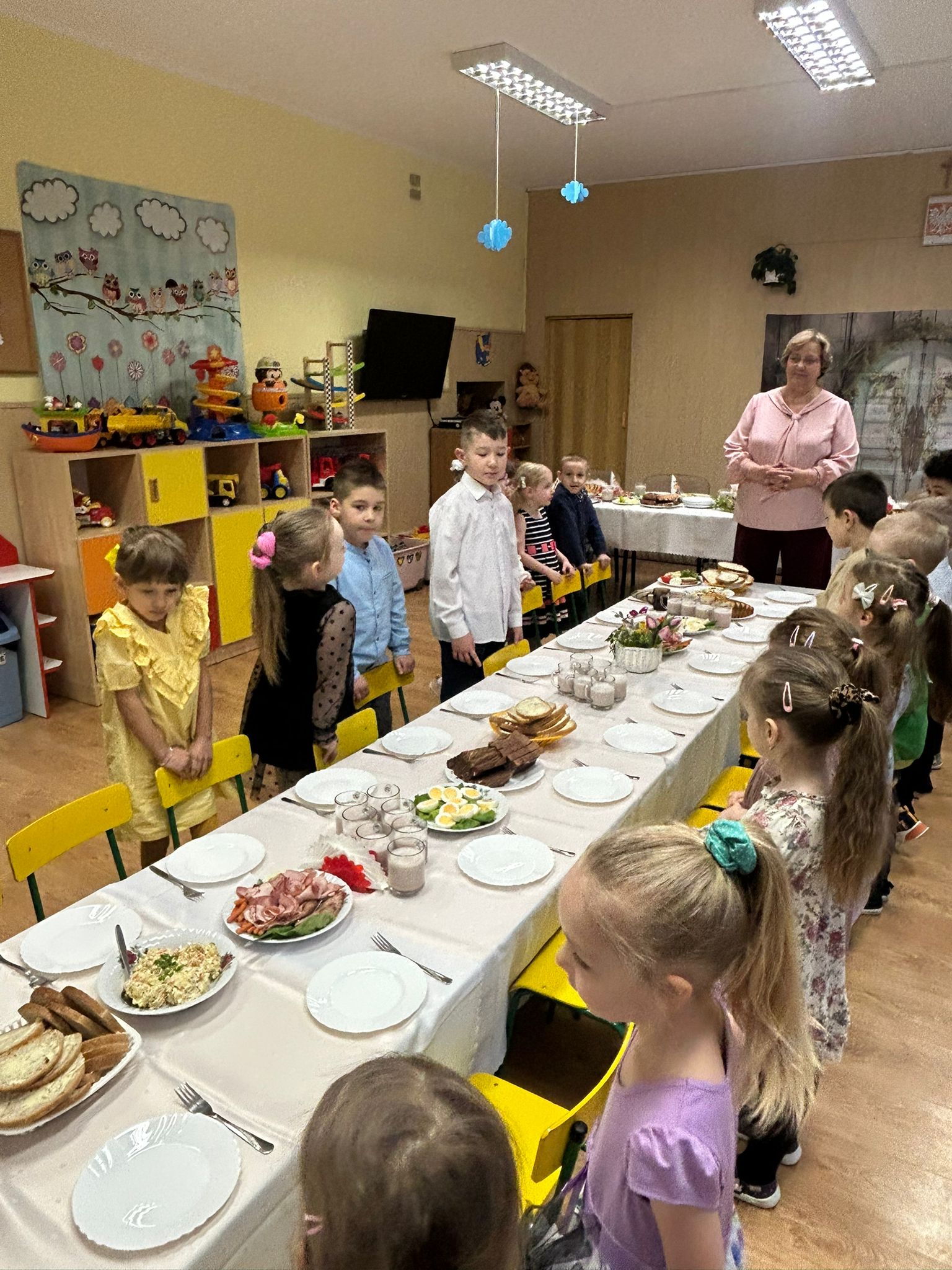 W naszym przedszkolu odbyło się uroczyste Śniadanie Wielkanocne, w którym wzięły udział dzieci oraz pracownicy przedszkola. Był to wyjątkowy czas pełen radości, wspólnego świętowania i wprowadzania się w atmosferę zbliżających się Świąt Wielkanocnych.