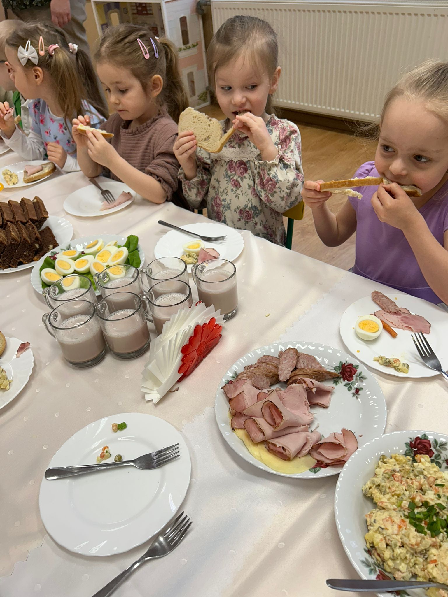 Podczas śniadania nie zabrakło rozmów o zwyczajach świątecznych, życzliwości i uśmiechu. Wspólnie spędzony czas przy świątecznym stole był dla wszystkich piękną okazją do integracji, budowania relacji oraz kultywowania tradycji. Dziękujemy dzieciom i wszystkim pracownikom za stworzenie tak miłej, ciepłej atmosfery.