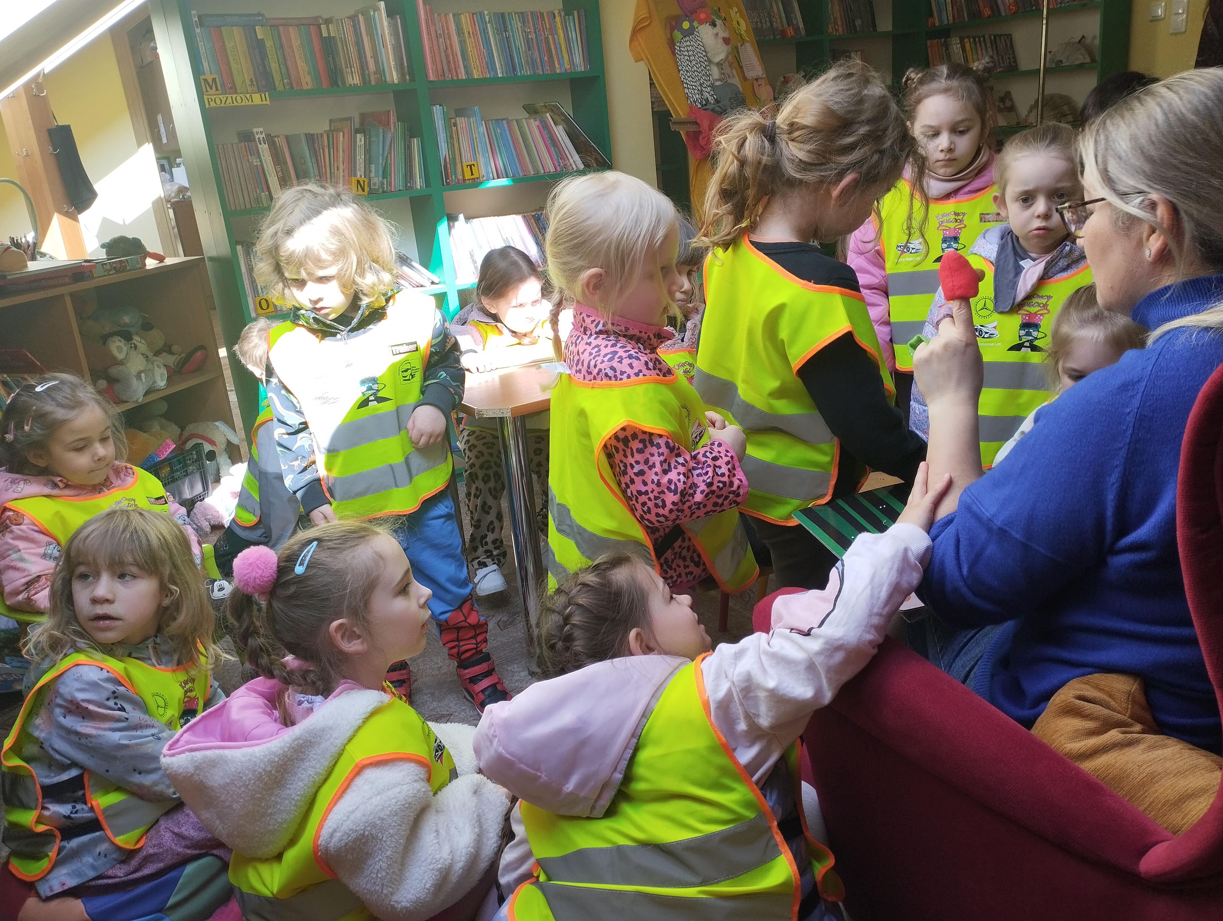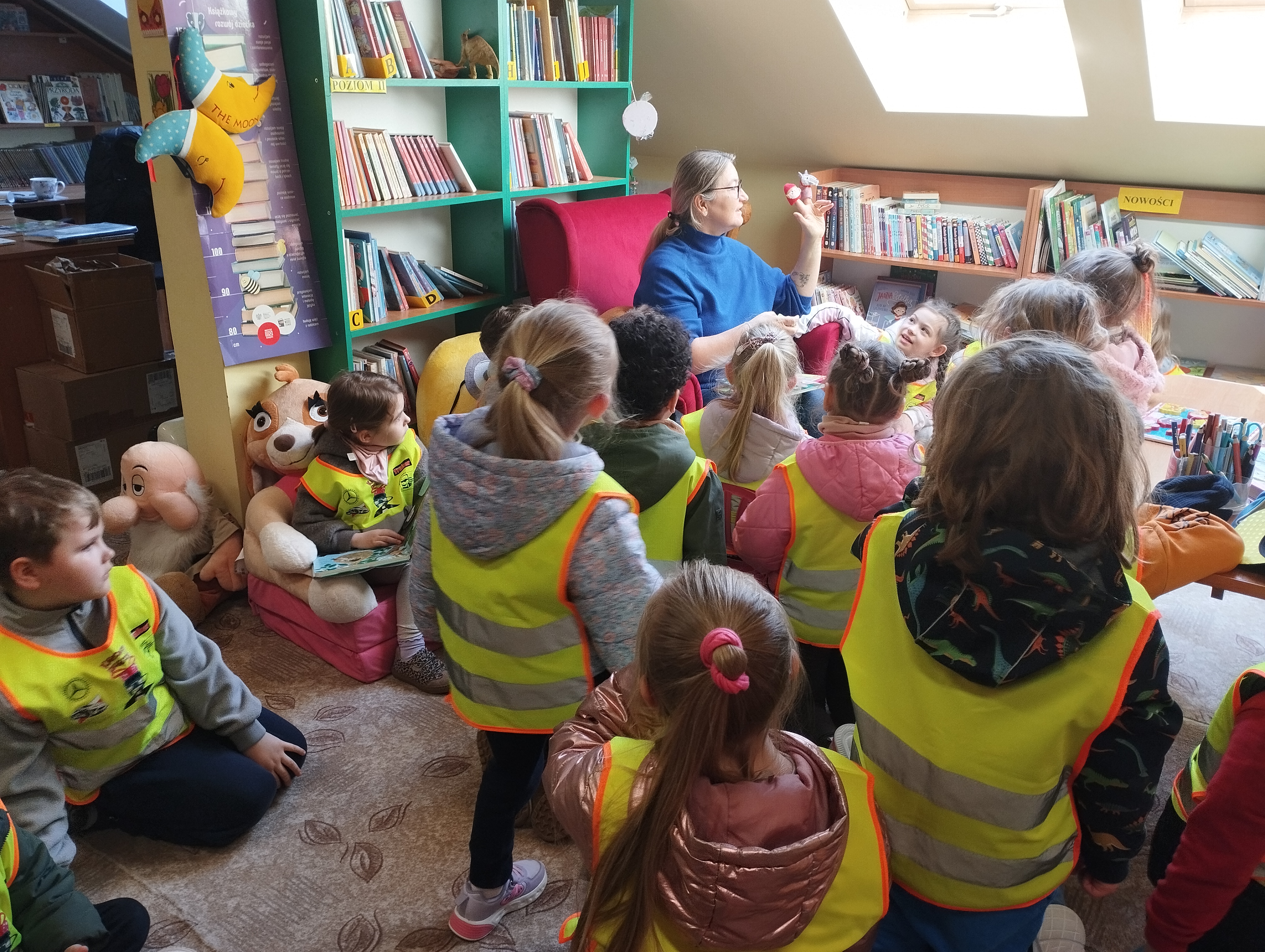 W piątek nasze przedszkolaki miały okazję odwiedzić pobliską bibliotekę. Było to wyjątkowe spotkanie z książką, które dostarczyło dzieciom wielu pozytywnych wrażeń i nowych doświadczeń.