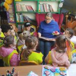 Na miejscu powitała nas pani bibliotekarka, która w ciekawy i przystępny sposób opowiedziała o pracy biblioteki oraz zasadach korzystania z książek. Dzieci dowiedziały się, jak należy dbać o książki oraz jak zachowywać się w miejscu, gdzie inni czytają i pracują.